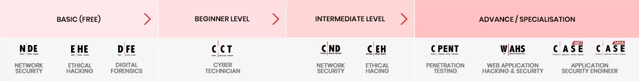 A novice should begin their journey by building a solid foundation in the core areas of cybersecurity. Start by getting the basics right with the Network Defense, Ethical Hacking, and Digital Forensics certification; the course to prepare for this certification is completely free.