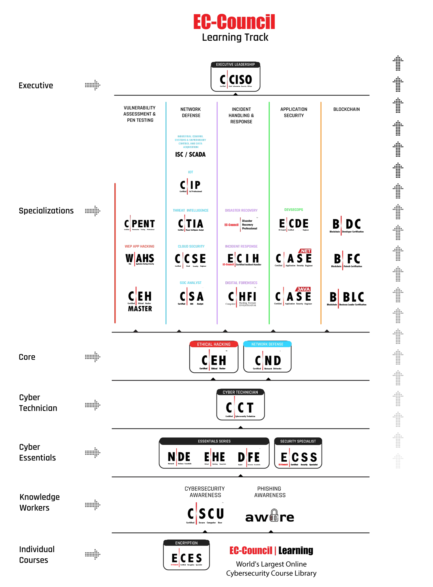 Attain a basic core certification of the Certified Cybersecurity Technician (C|CT) to begin your professional cybersecurity course. C|CT will immerse students into well-constructed knowledge transfer through training, accompanied by critical thinking challenges and immersive, hands-on lab experiences allowing candidates to apply their knowledge and move into the phase of skill development right in the class.